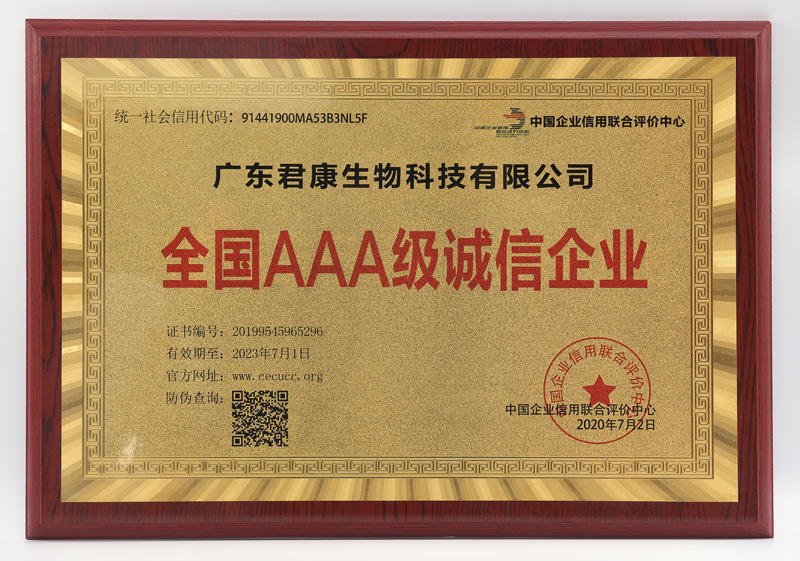 诚信企业殊荣是对君康企业信用的肯定和认可!