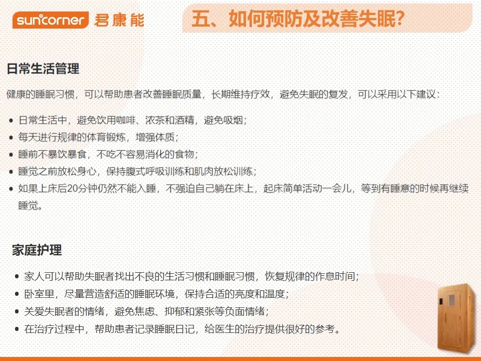 因为这失眠,胡店长中医、西医都看过,吃了不少的药却没有什么成效,后来因缘际会下,胡婉清店长认识了阳光屋,持续使用了半年时间。在使用阳光屋的过程中,胡店长发现自己的睡眠状况在慢慢改善,虽然还不能很快就入睡,但睡眠质量好了很多,只要睡着了就不容易醒过来,她非常感谢君康能阳光屋。