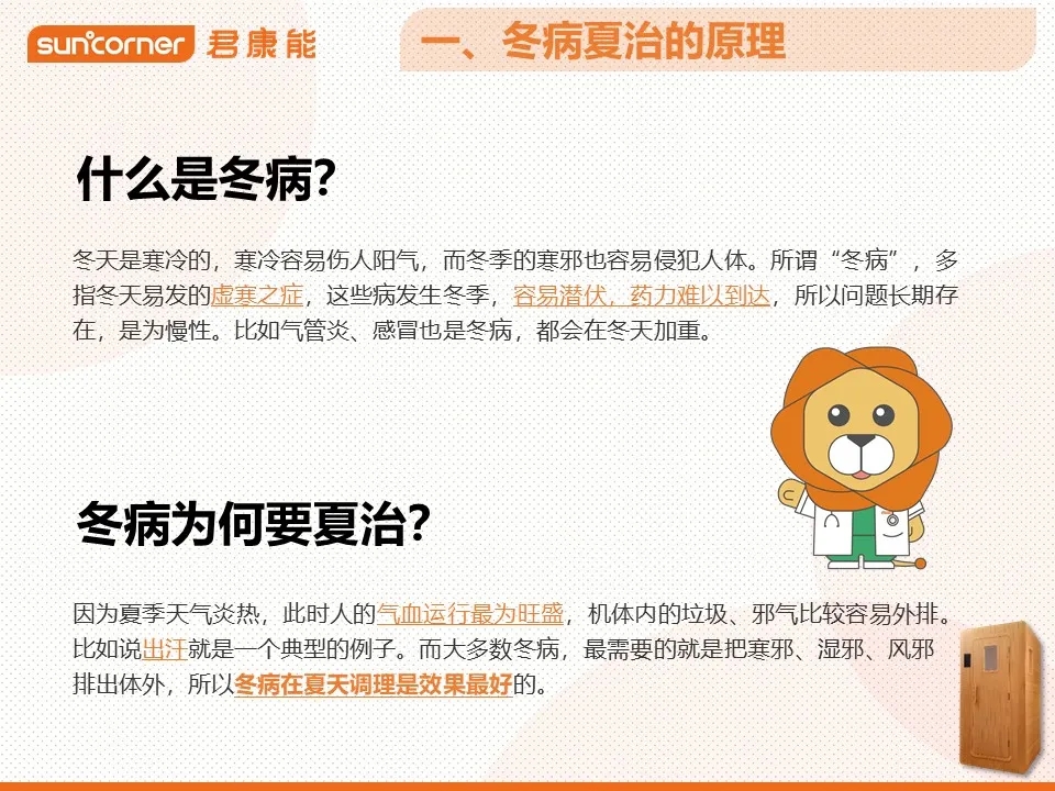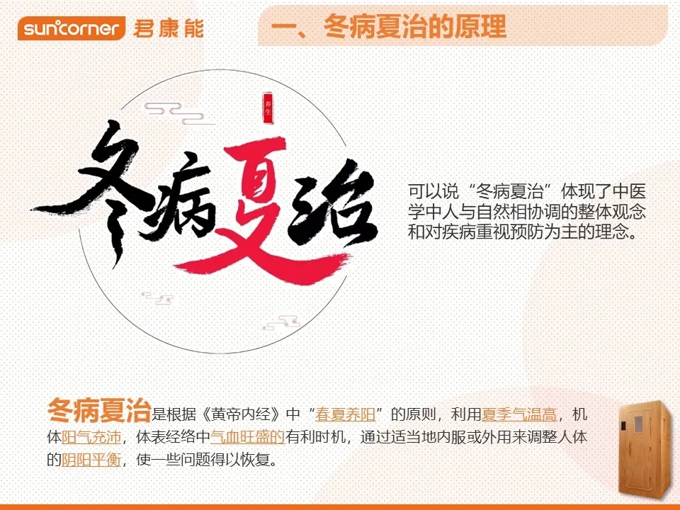 “冬病夏治”是中医学的一个概念,根据《黄帝内经》中“春夏养阳”的原则,利用夏季气温高,机体阳气充沛的有利时机,通过适当的内服或外用,把冬天累积在体内的寒邪湿气排出体外,从而达到人体的阴阳平衡。