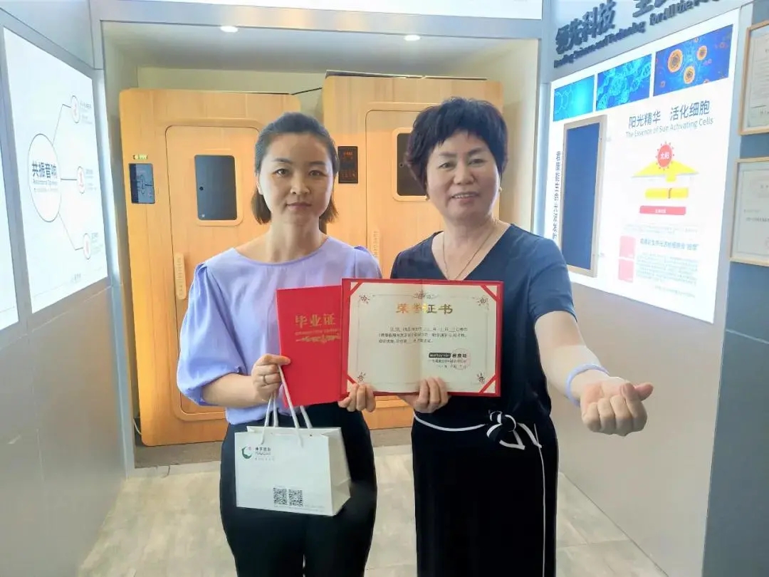 在今年的3月份,白总的妻子张微就已经亲临广东总部培训基地,参加“君康能阳光屋店铺服务中级培训”,并以第一名的成绩顺利结业。