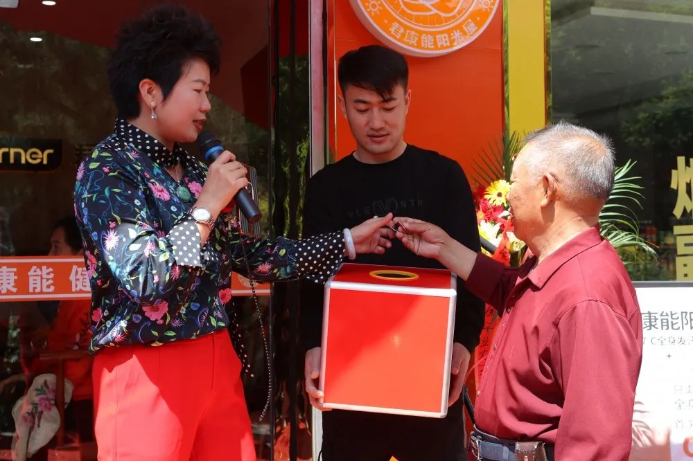 陈镘名总监同时担任了本次开业庆典的司仪,向前来的宾客介绍了君康能企业、君康能阳光屋以及新店开业福利。