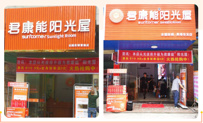 深耕健康行业多年,君康能深知健康对一个人,对一个家庭有多重要。而寒湿体质是万病的根源,君康能阳光屋萃取对人体有益的阳光精华,37℃低温内热,活跃人体全身细胞,让人体的寒湿气随着汗液排出体外。