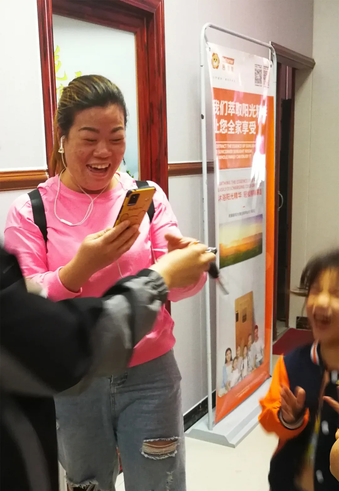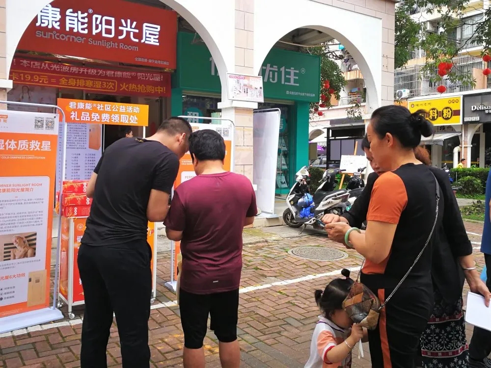除了设置活动咨询摊位,市场部刘经理和门店店长还带着店员,主动探访周边的邻居,给他们讲解君康能阳光屋的原理及作用,并介绍惠民活动详情。