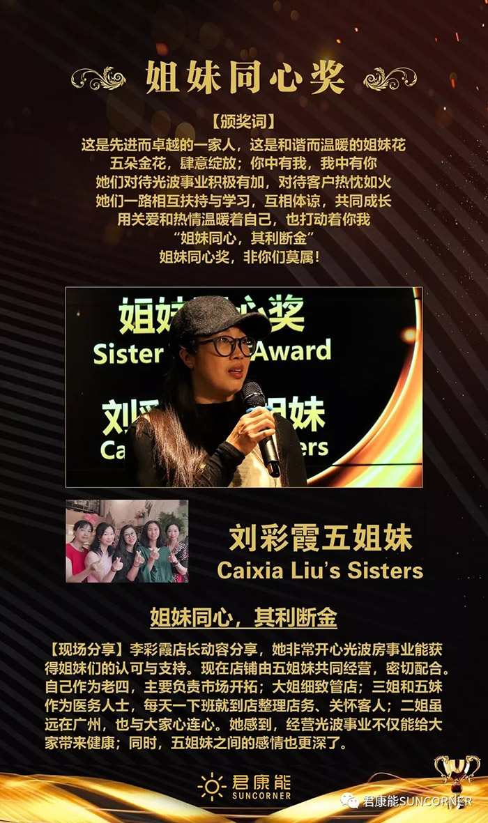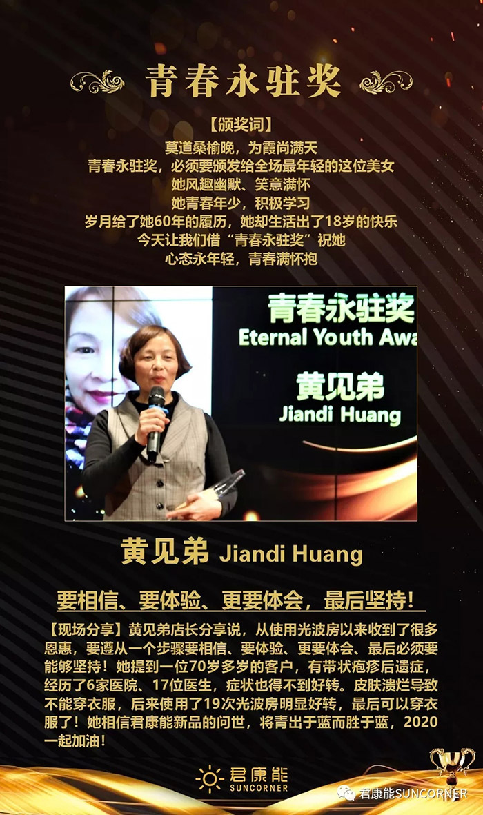 最后玲姐总结到:健康是最大的幸福,新的一年里我们将一起努力,把君康能光波健康能量带给更多有需要的人。同时她也强调,一个人做得好不算好,整个团队都做得好才是好。一个人可以走得很快,一群人才能走得更远。团结携手才有力量,所有微光聚到一起才会更亮!