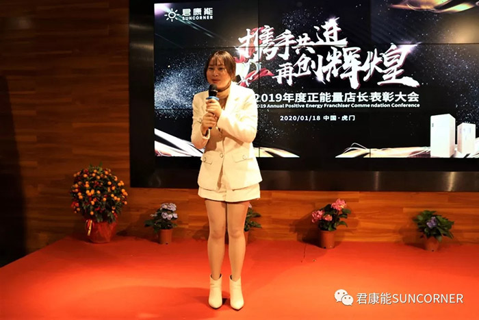 北京时间14点30分,表彰大会正式启幕,君康能负责人梁凤玲女士,作为君康能大家庭的灵魂人物,为大家致开幕词。