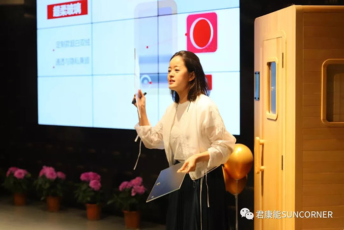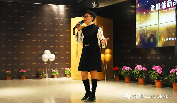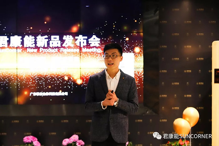君康能创始人万誉轩先生重点介绍了君康能两款新产品的升级亮点,新产品分别在外观设计、智慧控制、用户的视听感受三个层面做了品质提升。