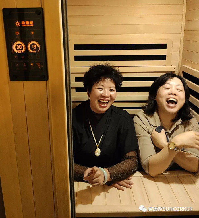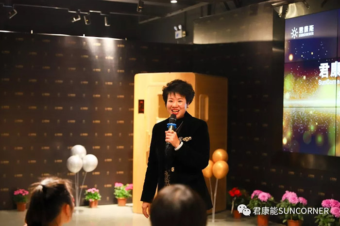 最后,总店的店长娜娜分享了客人体验君康能新品后的感受。她提到,对于君康能新品,大家都非常喜欢!特别是住在虎门万科城别墅区的张太太,每次都抢着用君康能新品,因为她能明显地感到君康能发出的光波能量更温和、更充足!这能让她排汗更舒畅,感受更舒适!张太太每次从君康能光波房里出来,都能卸下一身疲惫,感到放松。娜娜说,张太太对君康能的喜爱简直藏都藏不住。君康能光波房能更有效地帮助到客户,这让娜娜也感到很快乐!