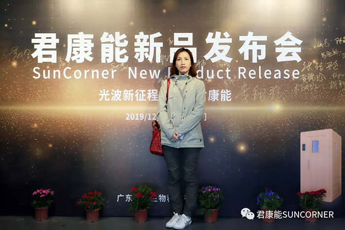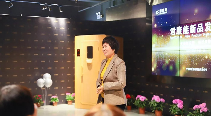 会场上,陈镘名女士迫不及待地与大家分享,自己一看到君康能光波房外观的瞬间,只用一秒,便爱上了君康能的高端设计。同时,她作为一名资深的中医研学者,陈女士更是对君康能新增腹前板和八髎板的设计赞不绝口,给予了充分的肯定!