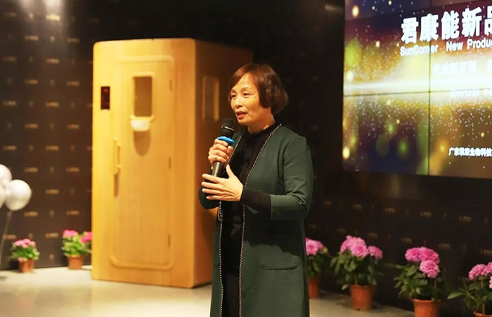 发布会上君康能负责人梁凤玲女士做了主题为“大爱光波,为君健康”的精彩致辞,致辞中梁凤玲女士讲述了从业十五年的宝贵经验,强调了君康能要温暖身边每一个人的健康使命。通过梁总弥足珍贵的分享,大家更进一步地了解到了光波房的益处和产品升级的必要性。同时,她也传递了“把健康带给身边的每一位亲人朋友,让所有人充分享受健康生活”的美好愿景。