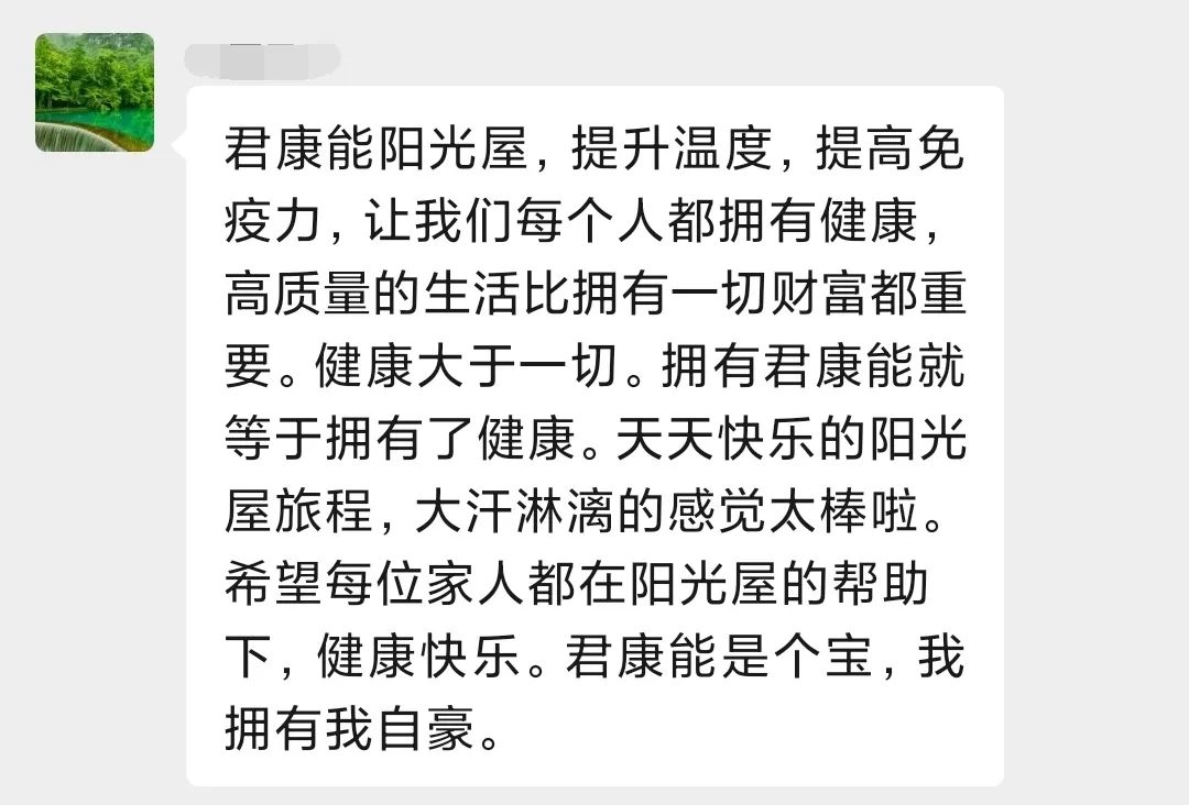 君康能阳光屋:守护您和家人的健康,粉丝们的信赖与喜爱是君康能不断前行的动力!