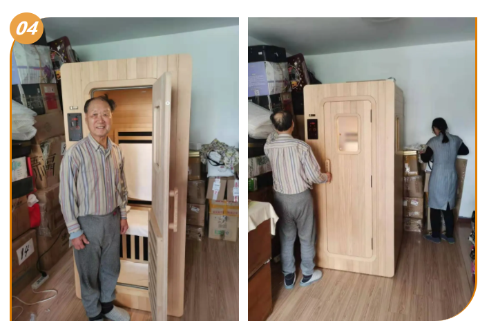 图片中国轻工业工艺品商会张副会长家住在北京,他的妻子是海南人民医院保健中心主任。他们在朋友的推荐下认识君康能阳光屋,了解原理后非常认可,体验后感受也非常不错。