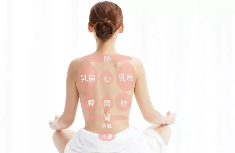 人体的五脏六腑均可在背部找到对应区:背上部对应肺和心脏,背下部对应脾、胃、肝、胆,腰部对应肾、膀胱、大肠和小肠。
