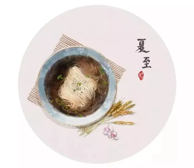 夏至吃面是很多地区的重要习俗,民间有“吃过夏至面,一天短一线”的说法。清代潘荣陛的《帝京岁时纪胜》中记有:“是日,家家俱食冷淘面,即俗说过水面是也……谚云:‘冬至馄饨夏至面’。”