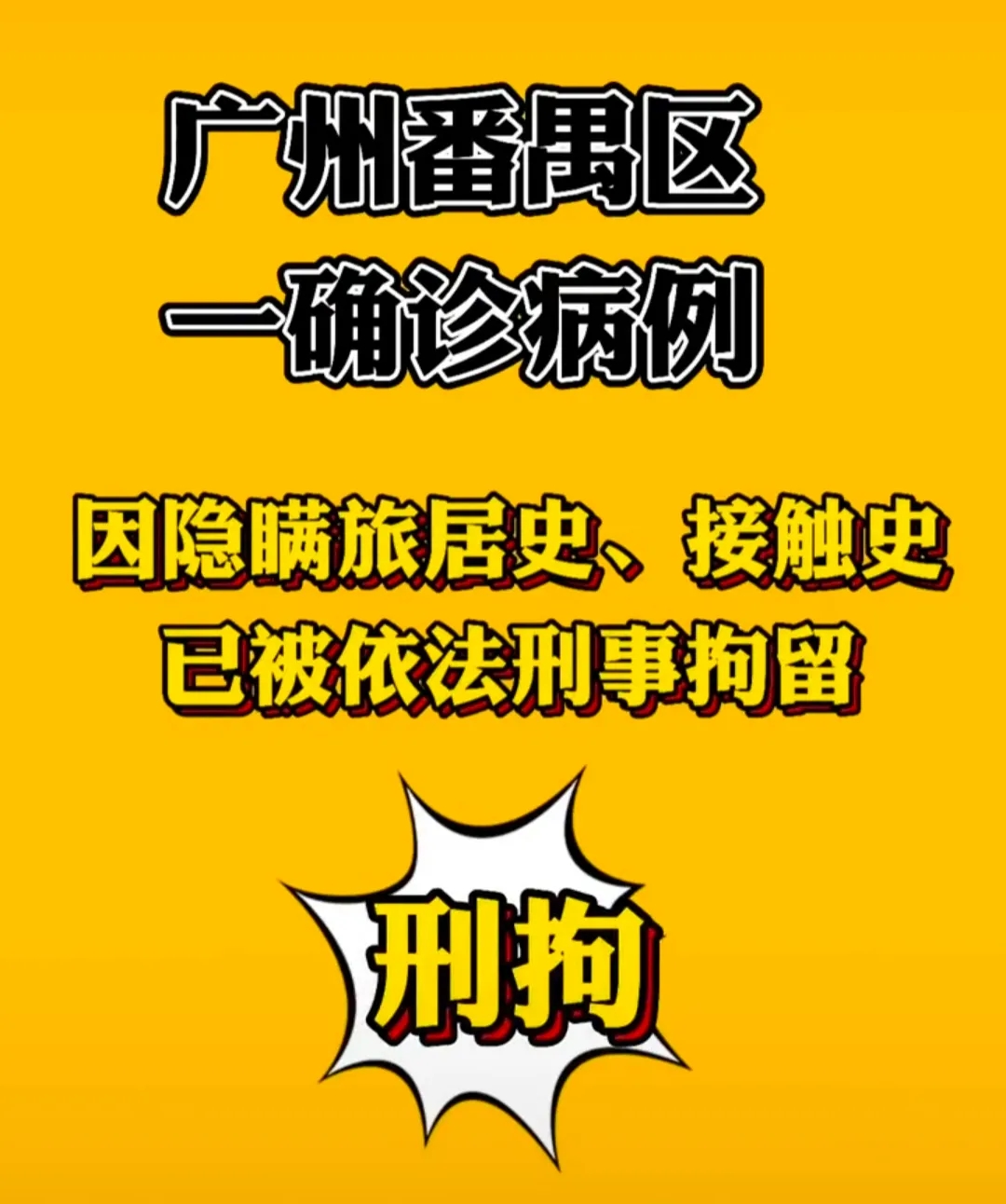 6月8日,广州疫情防控新闻发布会上通报:住在番禺区大石街北联村的确诊病例祝某,隐瞒旅居史、接触史,导致大量群众成为密切接触者、次密接触者!祝某目前已被刑拘。