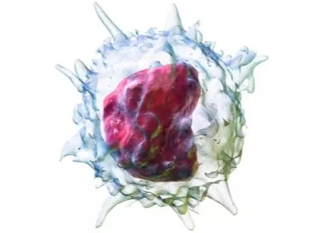 树突状细胞就像一个个张牙舞爪的树妖。平时,它们就像巡逻兵一样,在身体各处转悠。一旦发现病毒,它们就会猛扑上去,迅速将其吞食,之后在体内对这个病毒进行加工,提取病毒的特征“碎片”,并联络可以对付这种病毒的T细胞。