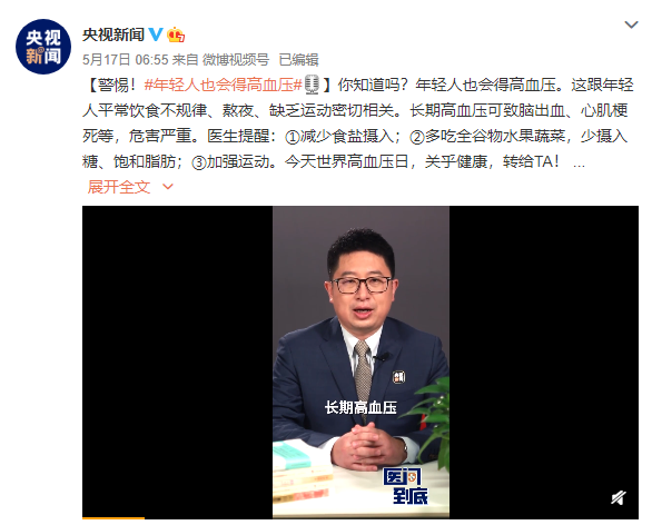 一提起高血压,很多人都认为这是“老年病”,但近日一则消息,刷新了人们的认知。