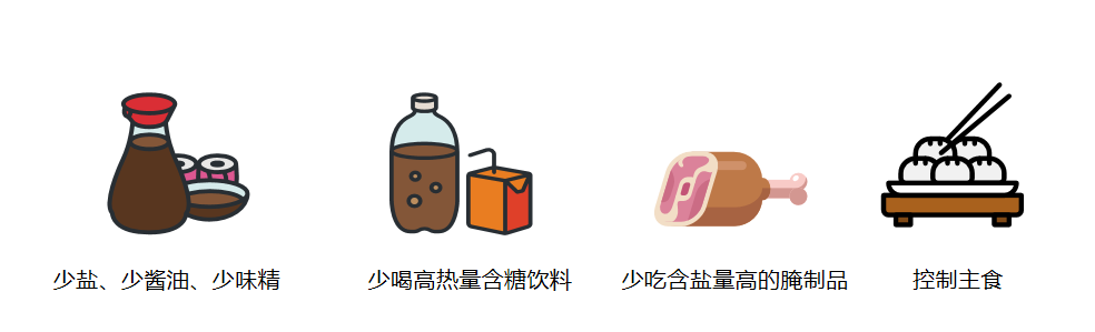 1.超重和肥胖:超重和肥胖者高血压发病风险是体重正常的 1.16~1.28 倍,随着内脏脂肪指数的增加,高血压患病风险增加。