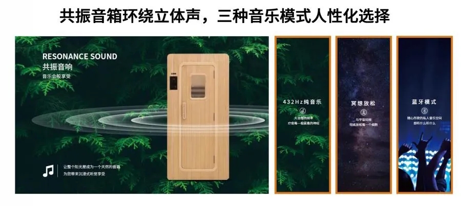同时,使用君康能阳光屋的共振音响,让你在出汗的同时,放松身心,释放压力。十分适合工作忙碌没时间运动的上班一族。