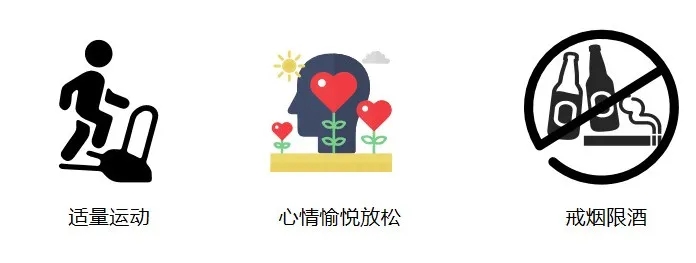 1.戒烟,戒酒。吸烟可以使血压升高,大量的饮酒可以加重心,肝,肾的病变。