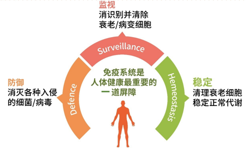 人体的免疫系统不仅能消灭外来的细菌、病毒,还能识别并消灭人体内的衰老细胞、变异细胞等。