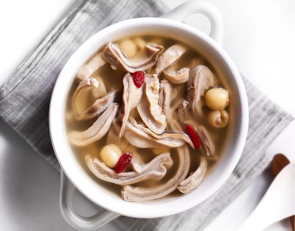 制作:猪肚洗净后加入姜片加水一起入锅煮,然后将煮开的猪肚捞出,过下凉水,将猪肚切成细长条;莲子掰开切中间的籽,洗净;锅中加水,倒入洗净的的莲子,放入猪肚条,加入香油、盐调味,煮20分钟即可。