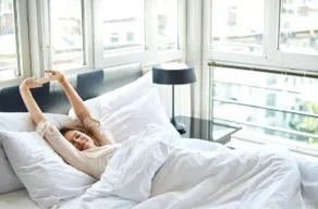 最适合伸懒腰的时间莫过于早上刚起床的时候了,两臂上举、打开、扩胸,配合缓而长的深呼吸。