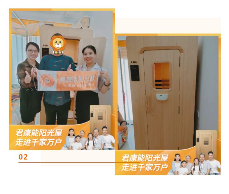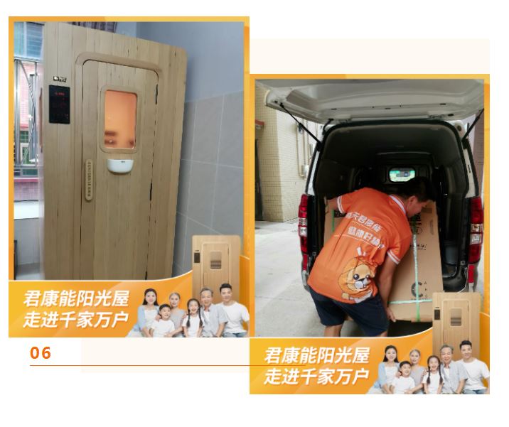 东莞长安卢先生使用君康能公益机2个多月,体验了阳光屋一次便决定将阳光屋搬回家。卢先生说:他身体湿气重,每次使用阳光屋都明显感觉到身体里的寒湿气在向外排出。