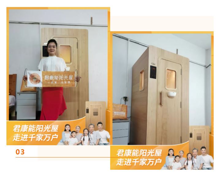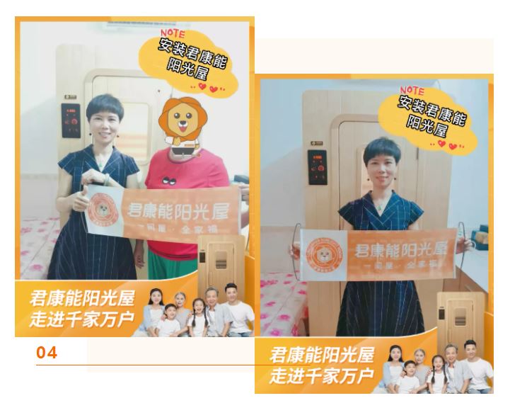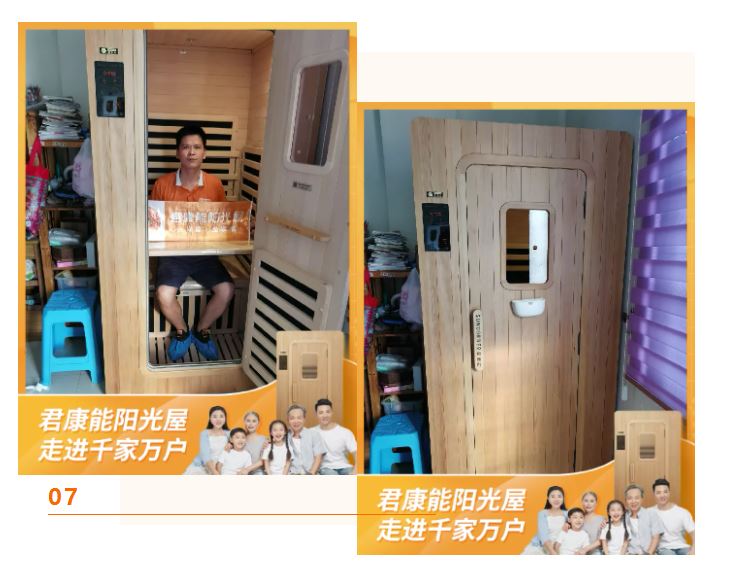 东莞虎门珍姐说:某品牌光波房在使用时下腹、脚部不热,温度不均匀!听朋友介绍到君康能阳光屋排寒祛湿效果更好,0体验,只看过阳光屋,当即决定以旧换新!