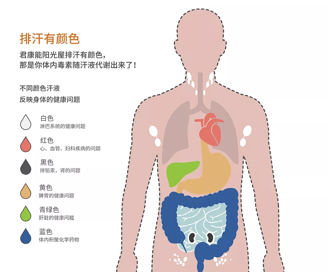 君康能阳光屋萃取的阳光精华能深层渗透皮肤,直接作用于组织细胞,给细胞补充能量;同时,身体产生由内而外的温热效应,加快血液循环与新陈代谢,将体内的寒湿和毒素排出。