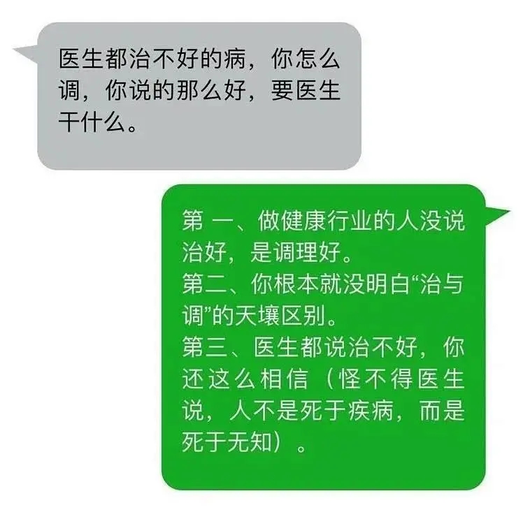 无知在于你的健康观念没有转变,分不清“治病”与“调理”的区别。