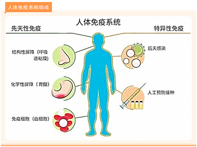 免疫力分三道防线保护人体,使人体不易生病。