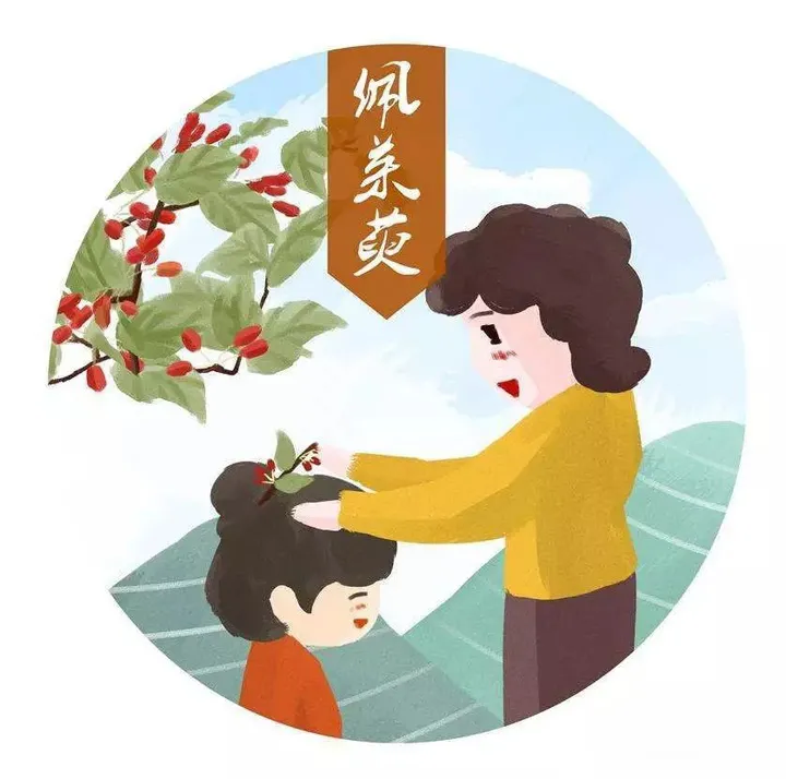 自汉代开始重阳节插茱萸便成为一种习俗。茱萸为一种中药,《本草纲目》中认为茱萸气味辛辣芳香,而性温热,有驱寒驱毒的作用。所以,重阳节插茱萸有除恶气、御寒等作用,并且茱萸还有暖胃燥湿等功效。
