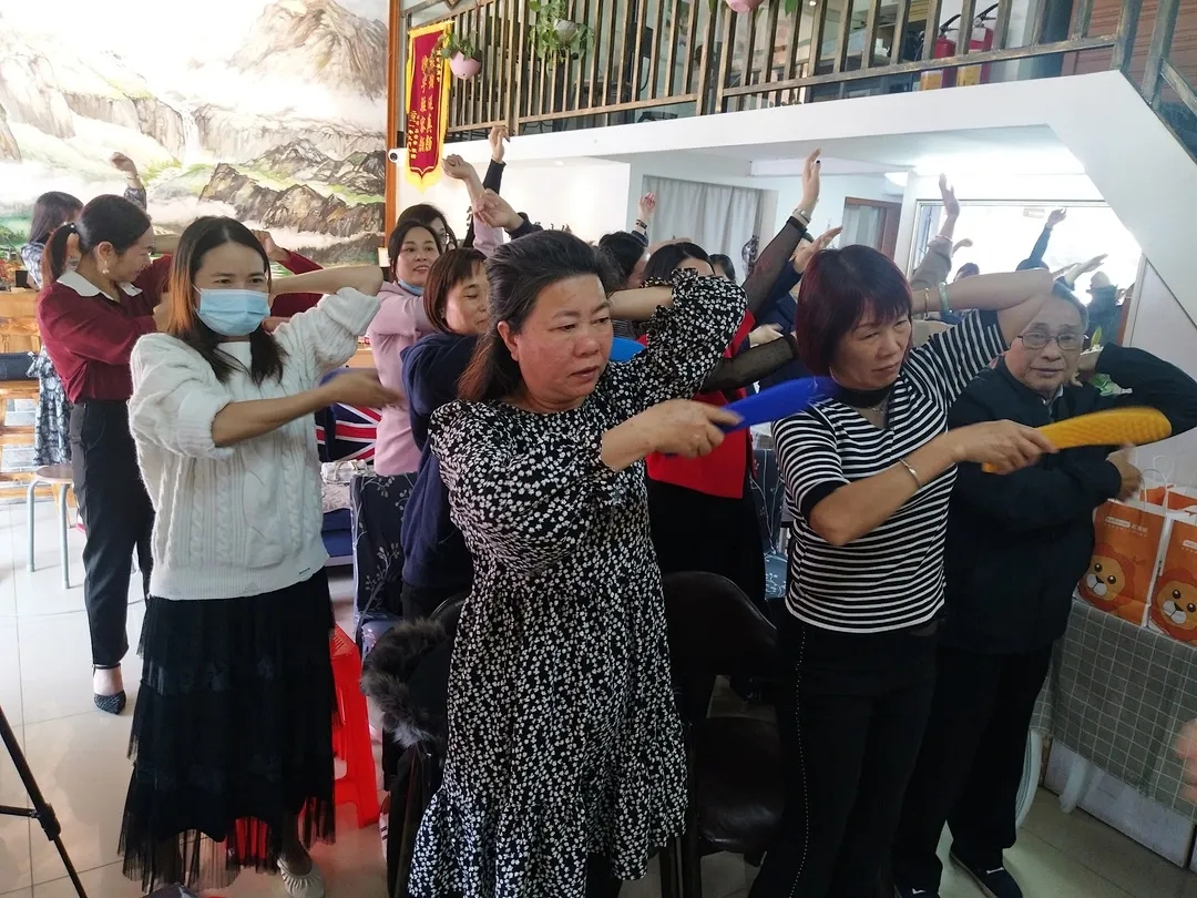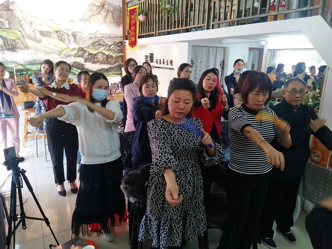 欧经理还带领大家一起做了“健康拍拍操”,教大家如何结合经络拍去拍打身体的脉络,舒筋活络。