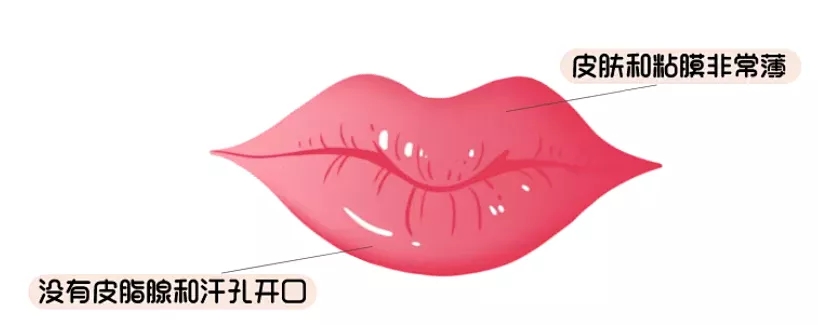 原因是嘴唇的皮肤和粘膜非常薄,只有周边皮肤的约三分之一厚度。同时,它也几乎没有皮脂腺和汗孔开口,不能分泌皮脂或水分来滋润自己。