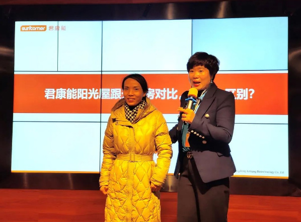 到场的会员中,不少都已经在自己家安装了君康能阳光屋。她们都十分大爱地上台分享了自己的使用感受。