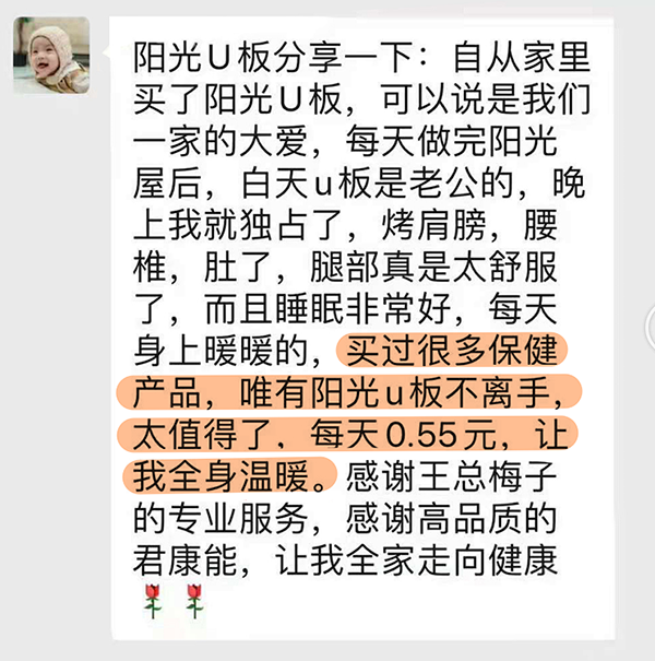 新疆粉丝对君康能阳光U板的四连赞好评。