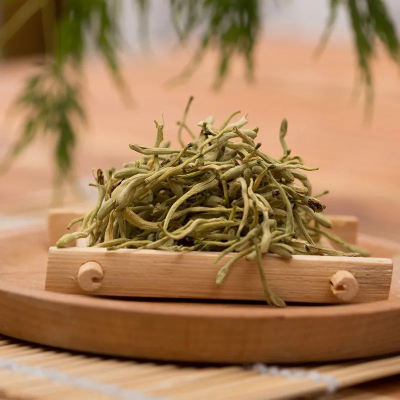 金银花具有清热解毒,护肤美容的功效,能降压、降低血清胆固醇;改善微循环,清除过氧化脂肪沉积,促进新陈代谢,延缓衰老,润肤祛斑。