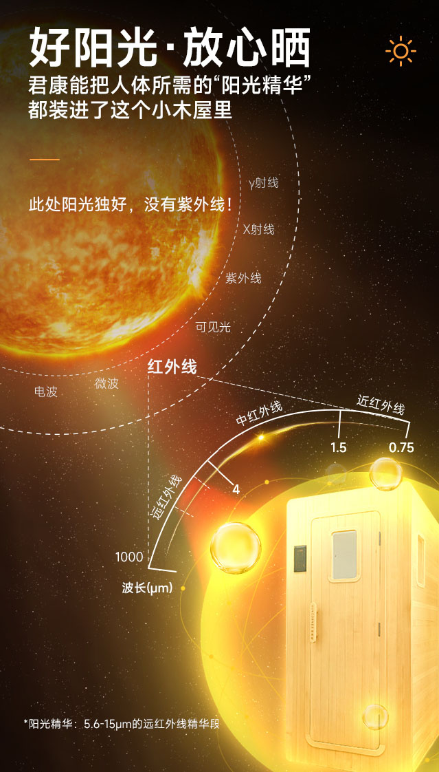 ▼君康能阳光屋,萃取没有紫外线的阳光精华。每天只要20-30分钟,放心晒太阳,做“天灸”。
