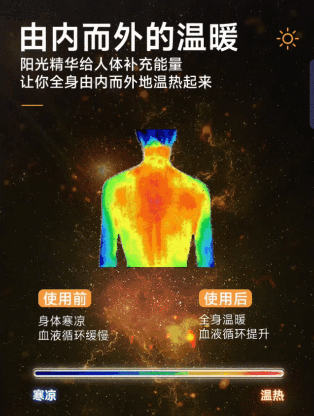 君康能阳光精华能深入渗透皮下4~5公分,温热效应促进血液循环,加快新陈代谢,使体内深层的毒素随汗液一起排出体外,净化体内环境。