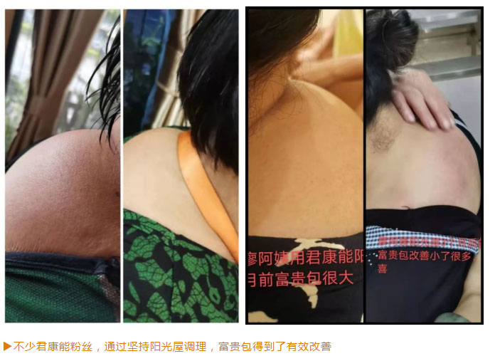 还有,用君康能阳光U板针对性地照射颈部,对富贵包也有很好的改善效果。
