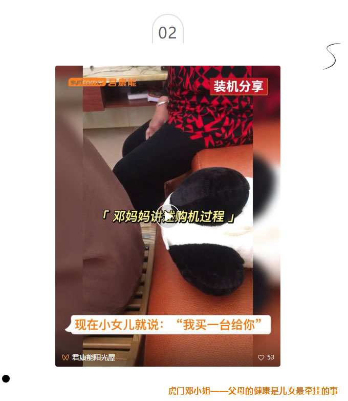 虎门怀德邓小姐使用君康能阳光屋一年多,身体状况得到多方面的改善,便决定也给爸妈买一台放家里,让爸妈每天使用调理身体。