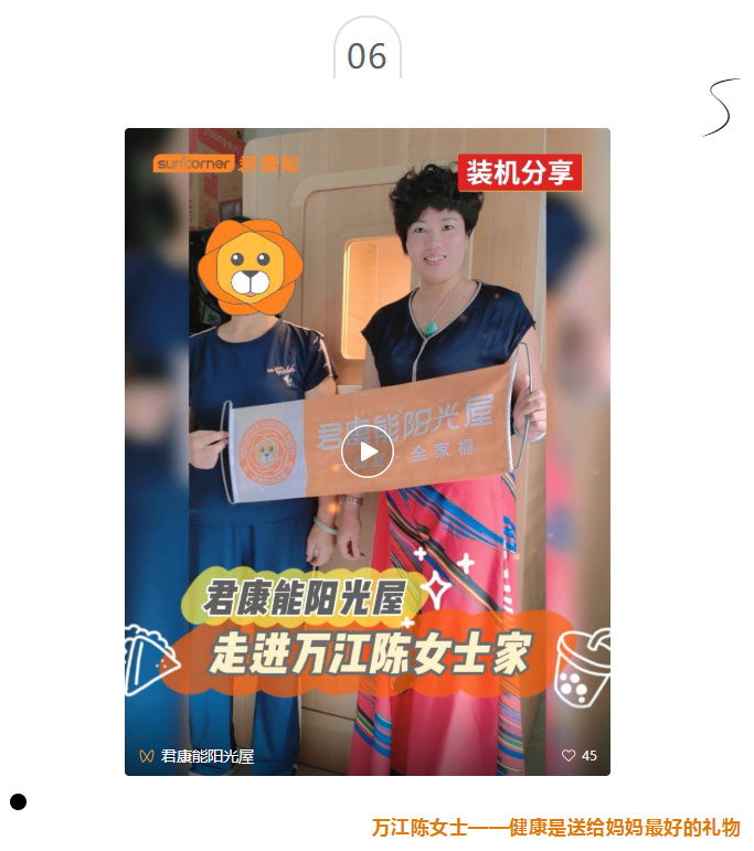 长安孙女士使用君康能阳光屋后哮喘得到改善。因为真切感受到君康能阳光屋对健康的帮助,她果断搬机回家孝顺年迈的父母!