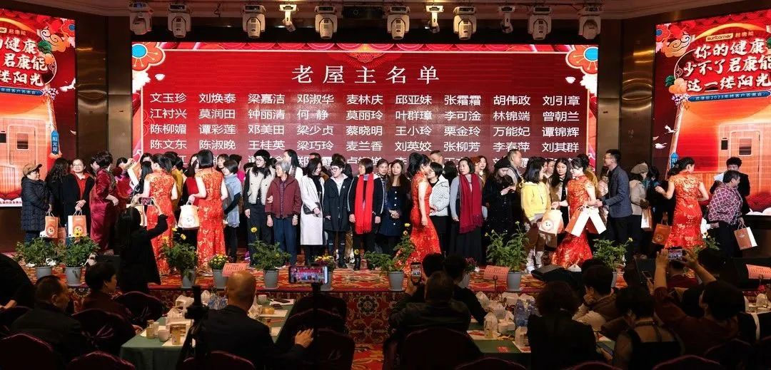 本次答谢会,为了感谢多年来一直支持君康能的老屋主们,梁董邀请大家上台合影留念,并送上心意礼品。