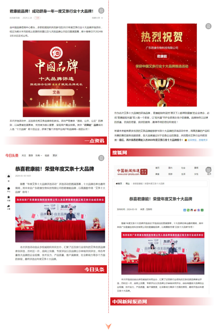 君康能的上榜不仅是对其品牌实力、产品品质、市场受欢迎程度和社会影响力的多重肯定,更将推动整个企业的发展和品牌提升,进一步扩大君康能艾条的影响力和知名度。